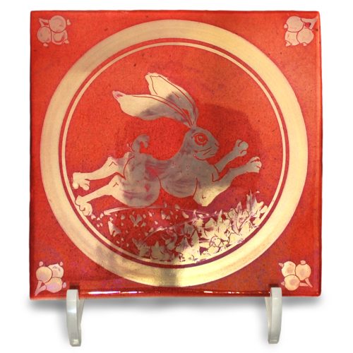 In the swim. Red ground. Diameter 21.5cm. Unique number 9327.