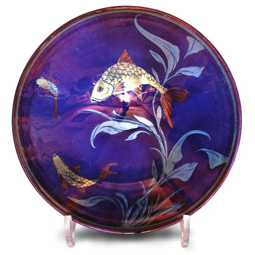 Fish and weed bowl. Purple-blue ground. Diameter 21.5cm. Unique number 9100.