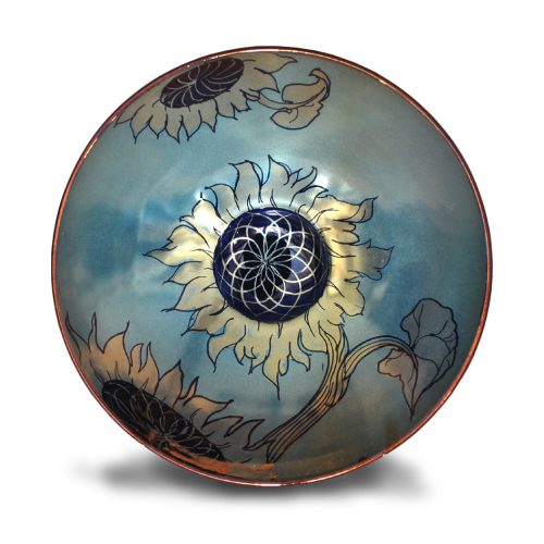 Sunflowers bowl. Purple-blue ground. Diameter 17.5cm. Unique number 9291.