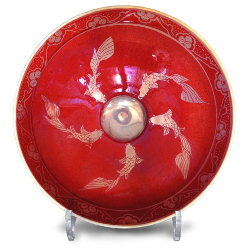 In the swim. Red ground. Diameter 21.5cm. Unique number 9327.