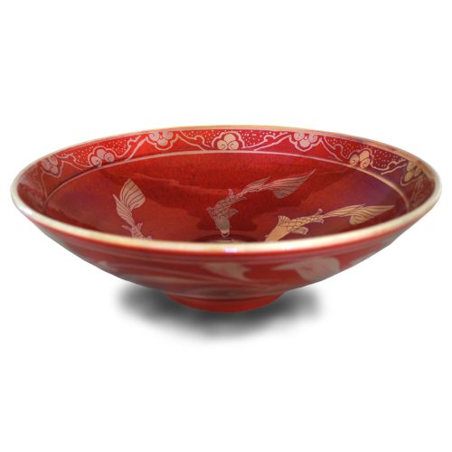 Moth bowl. Red ground. Diameter 17 cm. Unique number KB144.