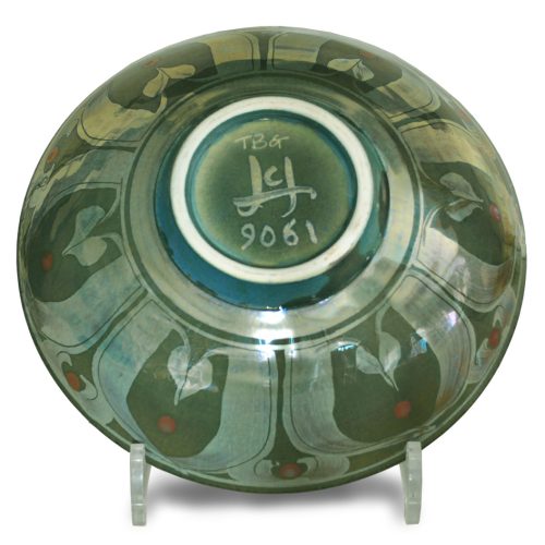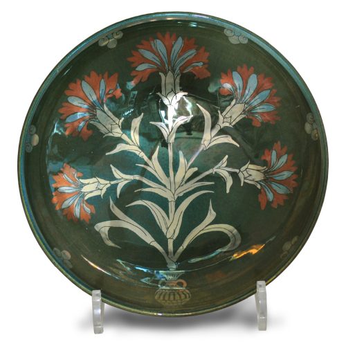 Carnation bowl. Blue-green ground. Diameter 16.8cm Unique number 9379.