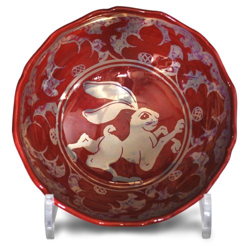 Hare and ornate border. Red ground. Diameter 16.5cm. Unique number 9175.