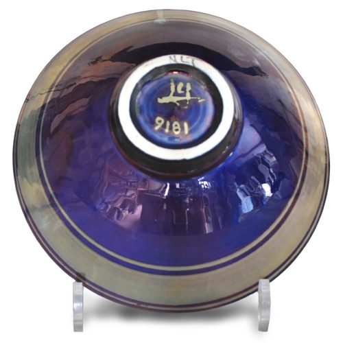 Curlew bowl. Purple-blue ground. Diameter 19cm. Unique number KB099.