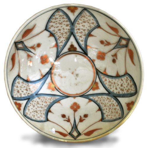 Fine Islamic petal pattern bowl. Ivory and turquoise ground. Diameter 19cm. Unique number 9281.