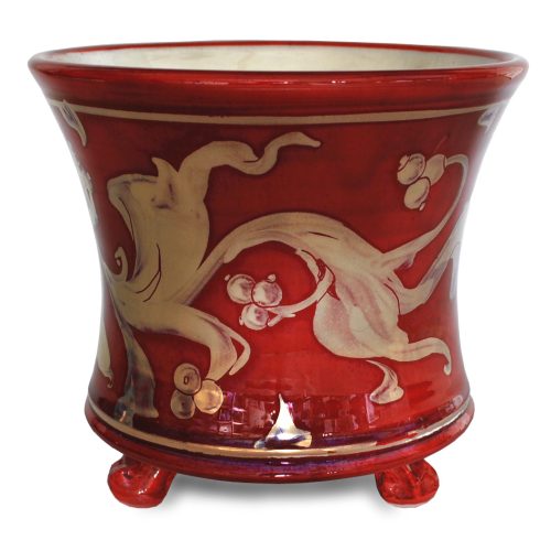 Flowing pattern planter. Deep red ground. Internal height 10.5cm, width 14cm. Unique number 9408.
