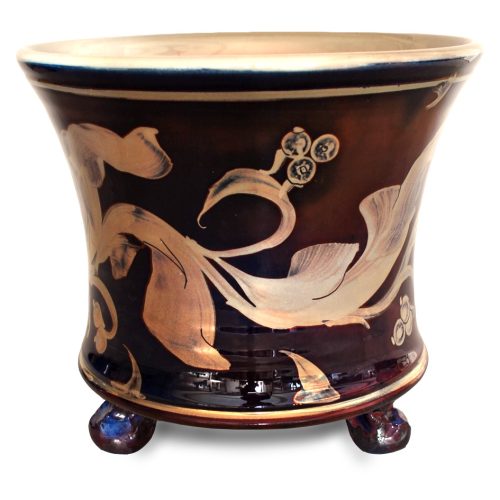 Flowing pattern planter. Purple-blue ground. Internal height 10.2cm, width 14.5cm. No unique number.