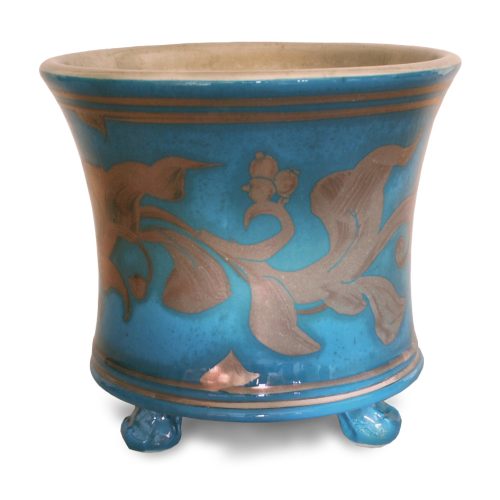 Flowing pattern planter. Turquoise ground. Internal height 10cm, width 13cm. Unique number 9403.