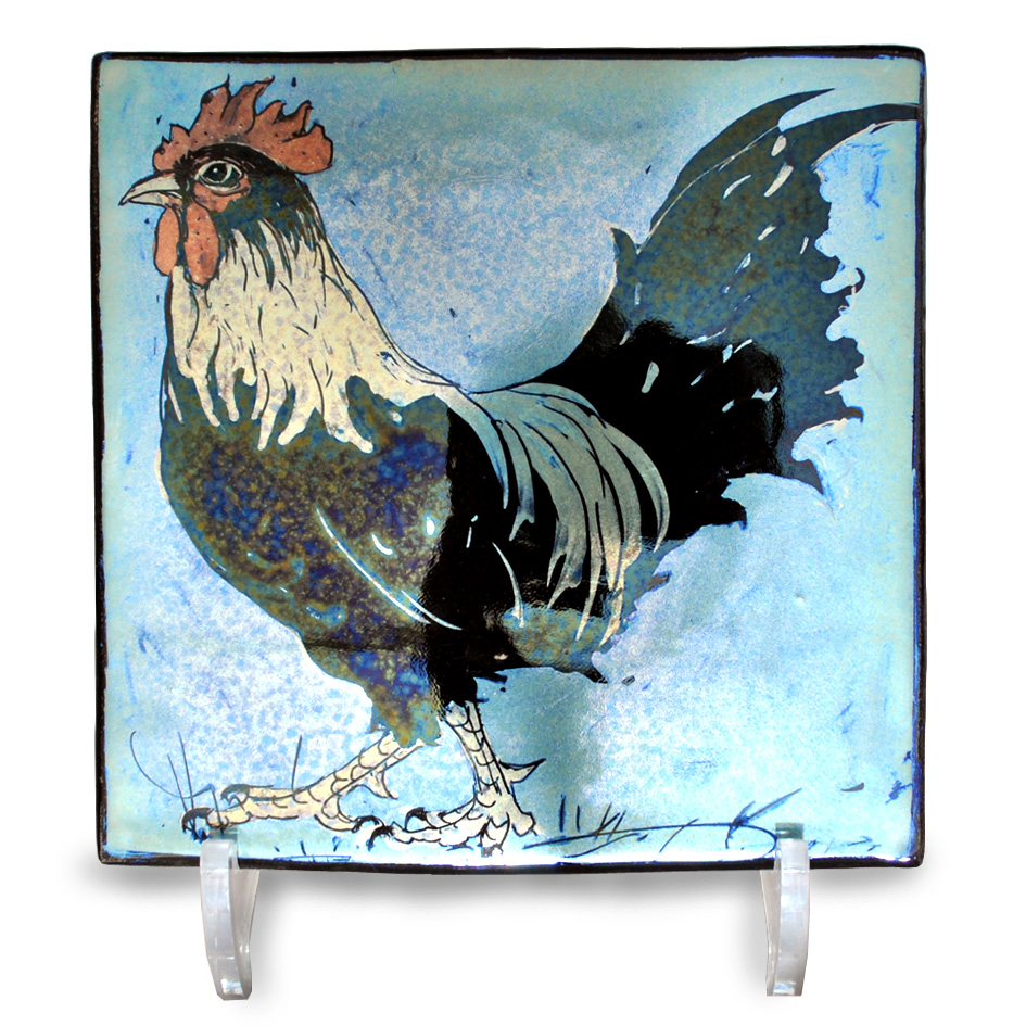 Homemade lustreware vitrified porcelain tile with lustre brushwork. Approx 15cm/ 6 inches square.