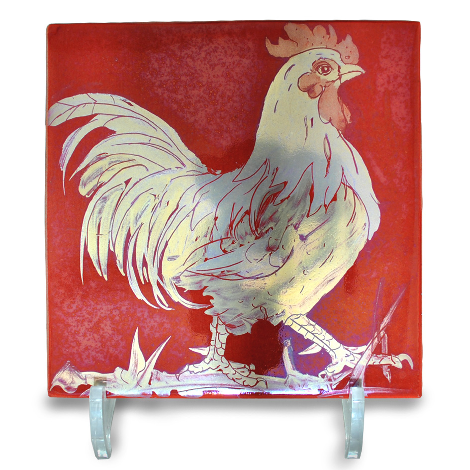 Handmade lustreware vitrified porcelain tile with lustre brushwork. Approx 15cm/ 6 inches square.