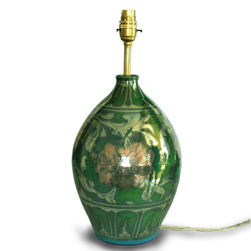 Small bowl with delicate Islamic inspired decoration. Copper lustre brushwork on Ivory and blue-green ground. Diameter 17.5 cm. Signed and numbered.