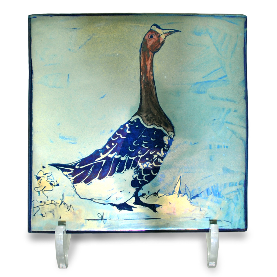 Handmade lustreware vitrified porcelain tile with lustre brushwork. Approx 15cm/ 6 inches square.