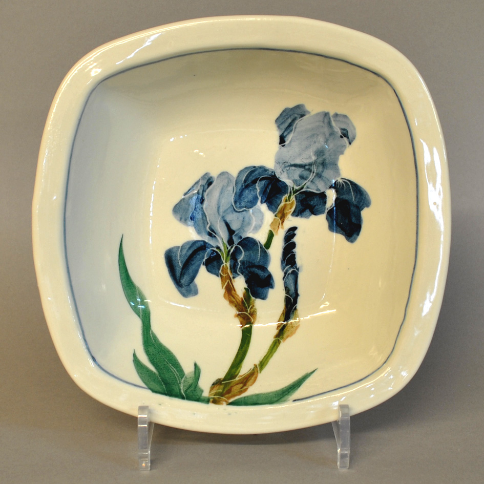 Our square oven dish is perfect for serving puddings, hot vegetables or salads. The rim makes for easy handling. Dishwasher and oven safe. Iris design. Approx 21.5cm/ 8.5 inches square. Each is individually decorated so yours will vary a little from the picture.